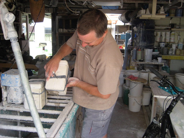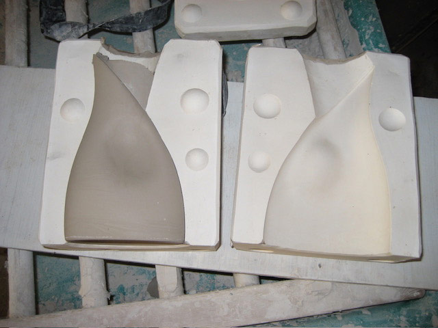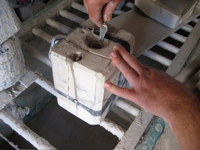 After leaving the skin of clay remaining in the mould to firm up, the ‘spare’ is removed.
