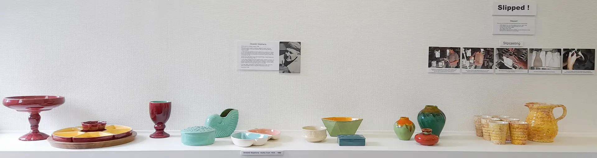 Oswold and his wife setup a studio called Handcraft Pottery, making slipcast works from the mid 1930s until about 1960.